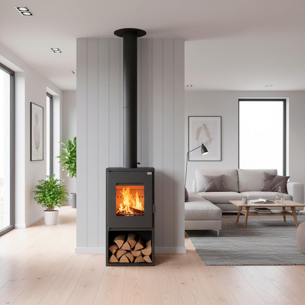 Siente el calor que envuelve sin renunciar a la estética. La pf06 combina un diseño contemporáneo en color negro con un cristal resistente, combustión prácticamente silenciosa y un compartimento inferior pensado para tener la leña siempre a mano. Ideal para espacios residenciales que buscan una fuente de calor eficiente, segura y con presencia.