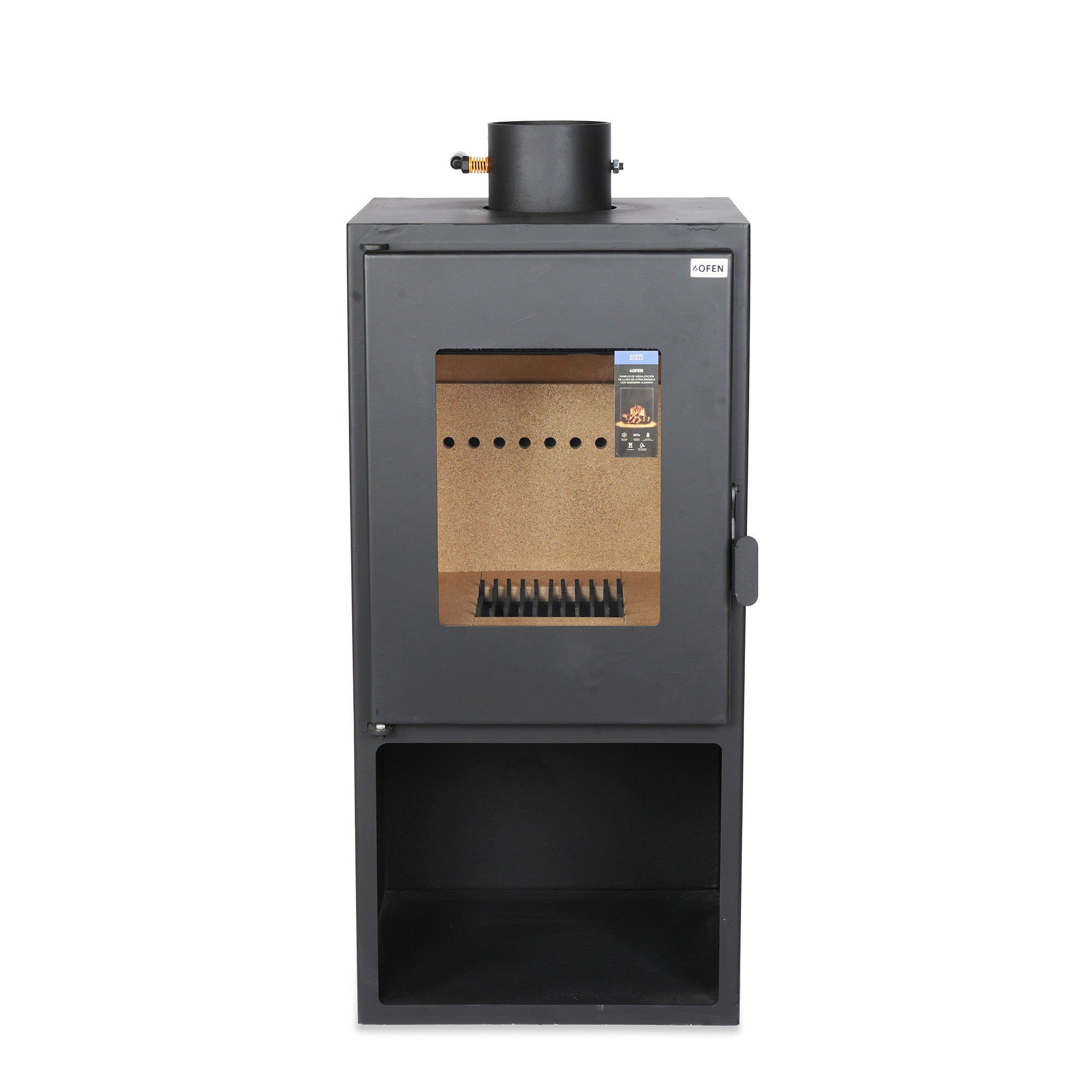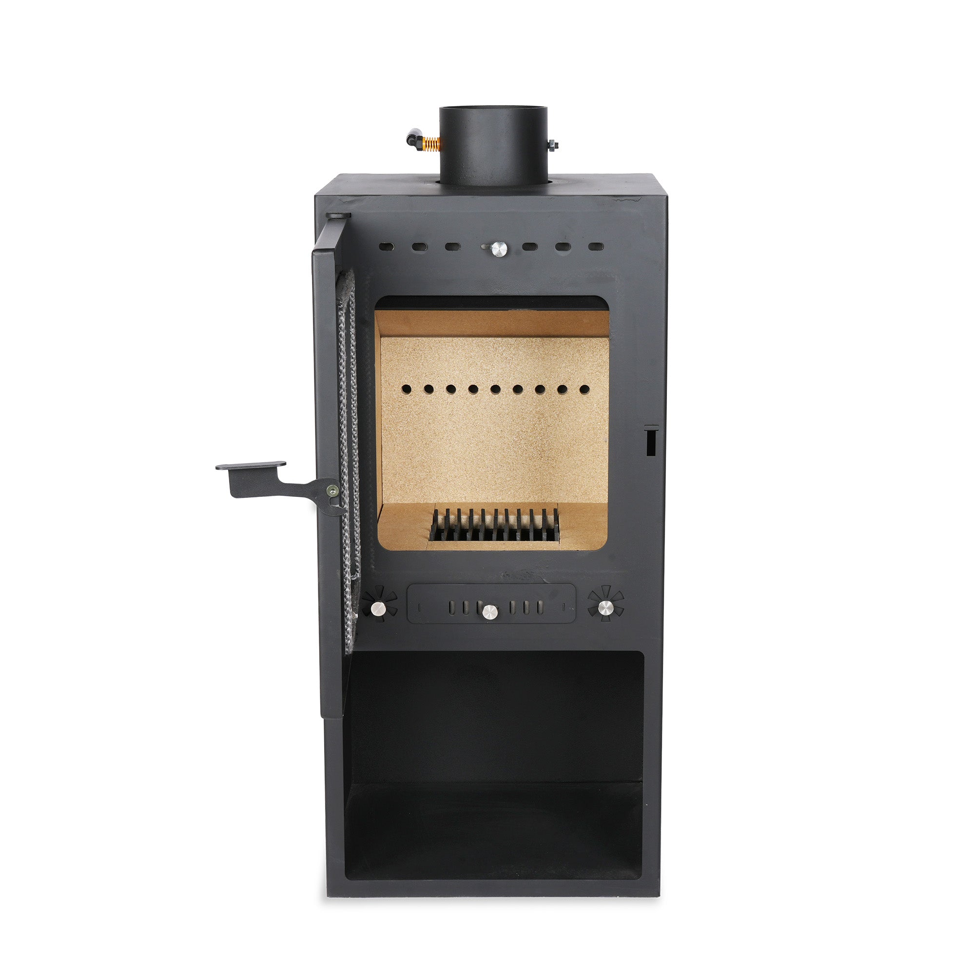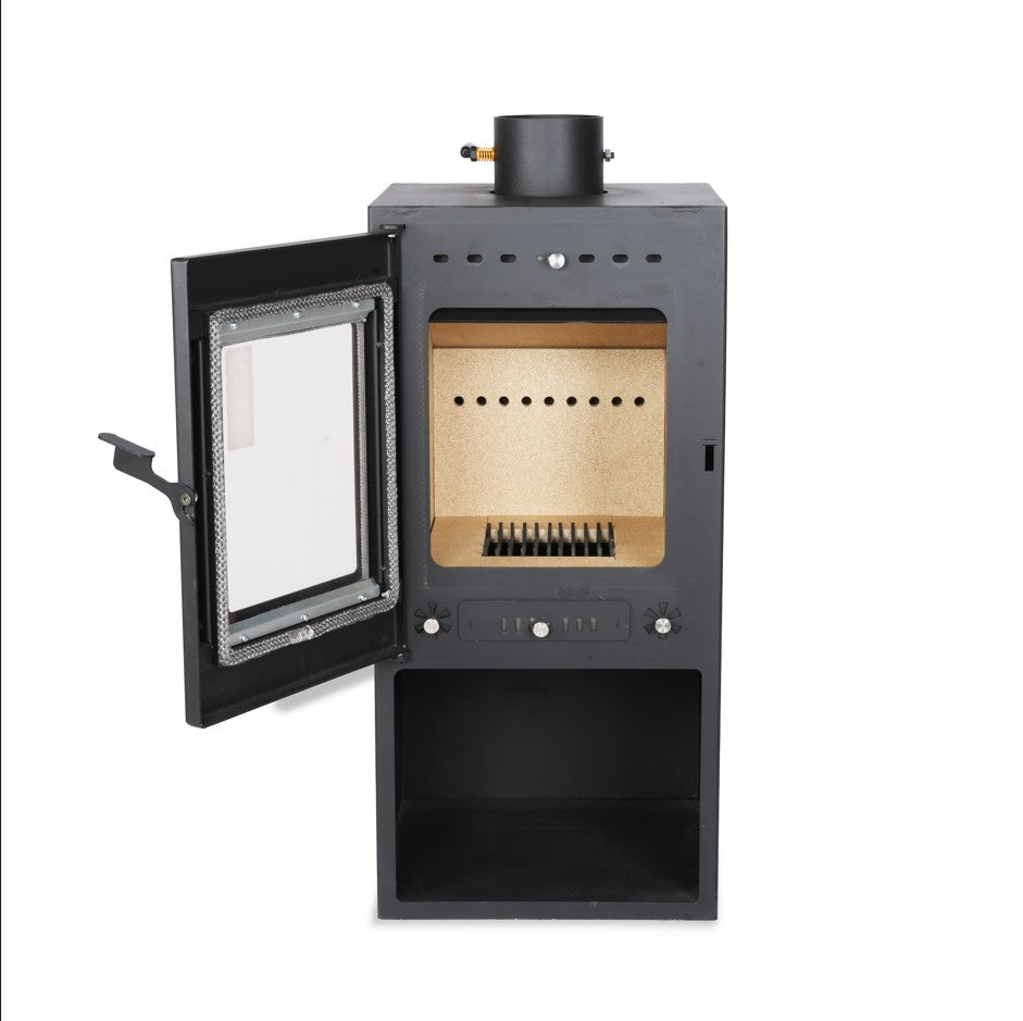 - Diseño práctico: hueco inferior para leña (visual y funcional) —calor a la vista y leña siempre accesible.