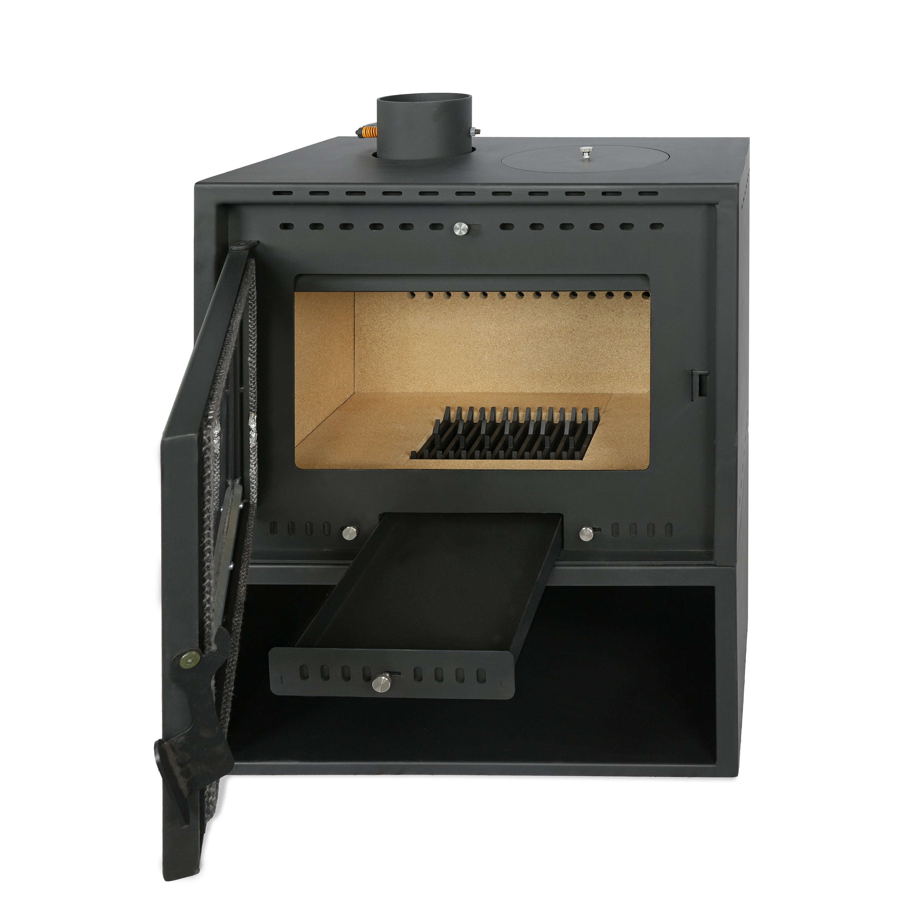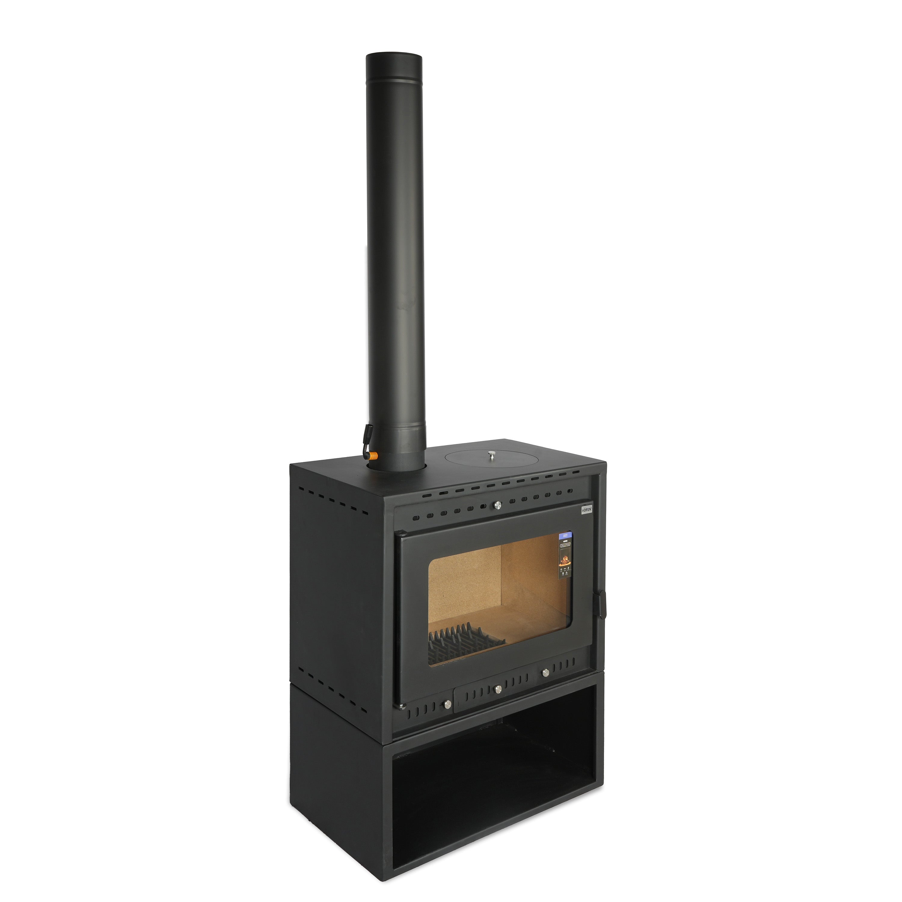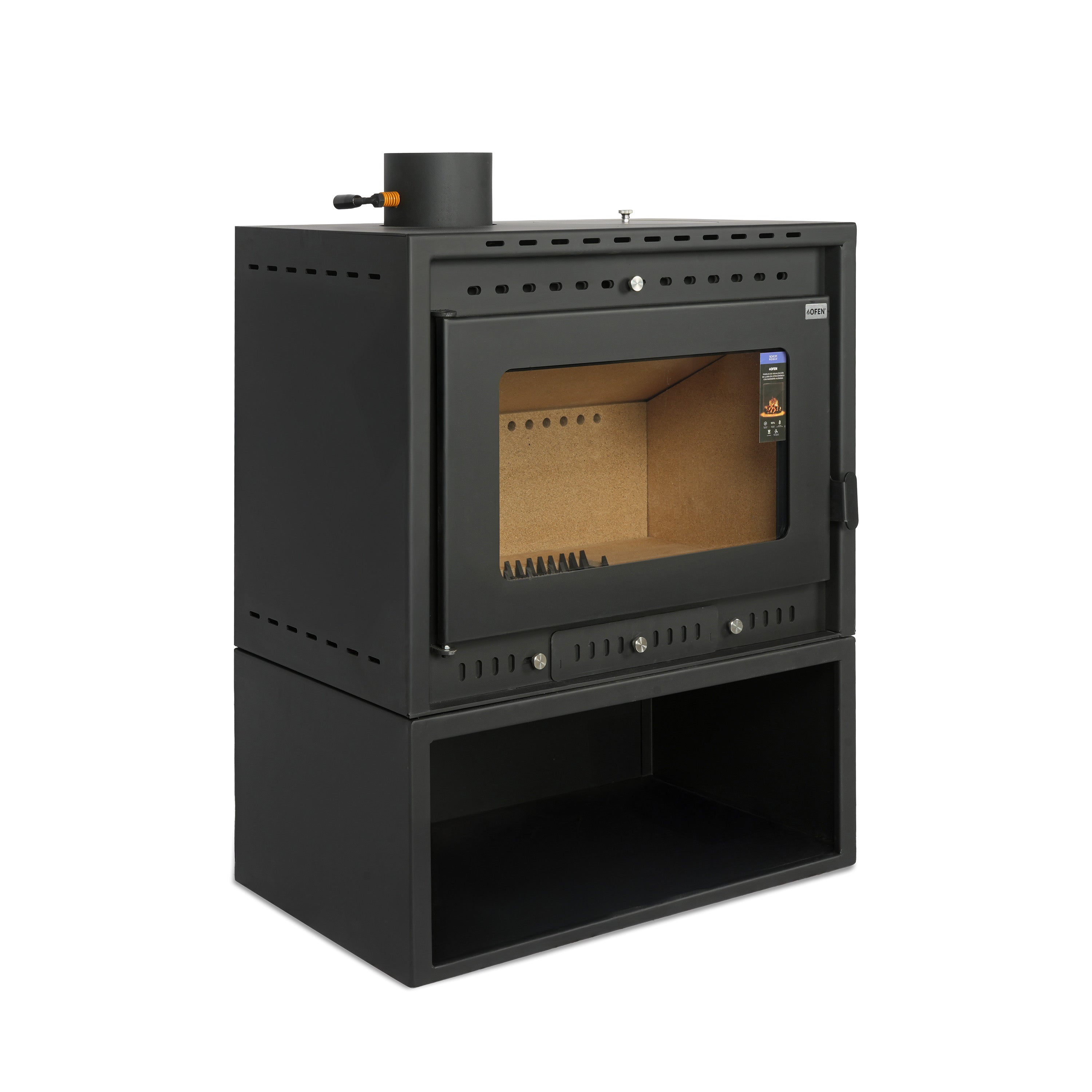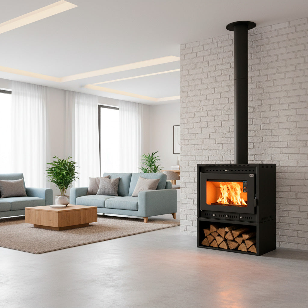 - Compartimento inferior para leña: práctico para mantener la leña a mano.