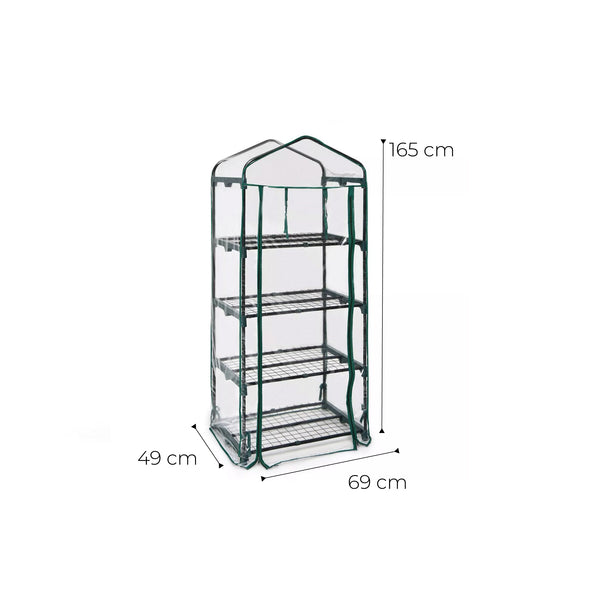Con unas dimensiones de 69 x 49 x 165 cm (largo x ancho x alto), este invernadero aprovecha al máximo cada centímetro de tu espacio exterior, siendo perfecto para cultivar hierbas, flores y pequeños vegetales.