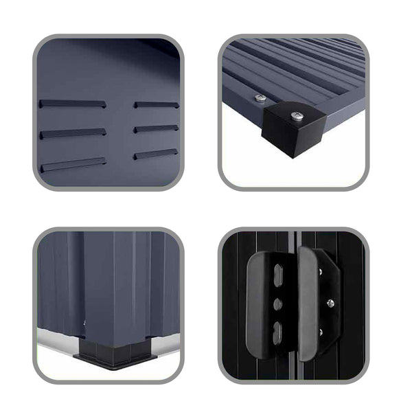 Optimiza tu espacio exterior con nuestra Bodega de Jardín Multiuso, diseñada para organizar y proteger herramientas y equipos de manera eficiente. Su estructura de acero galvanizado con teja de acero de color garantiza resistencia a la intemperie y durabilidad a largo plazo, brindándote un almacenamiento seguro y espacioso para jardines, patios y áreas al aire libre.