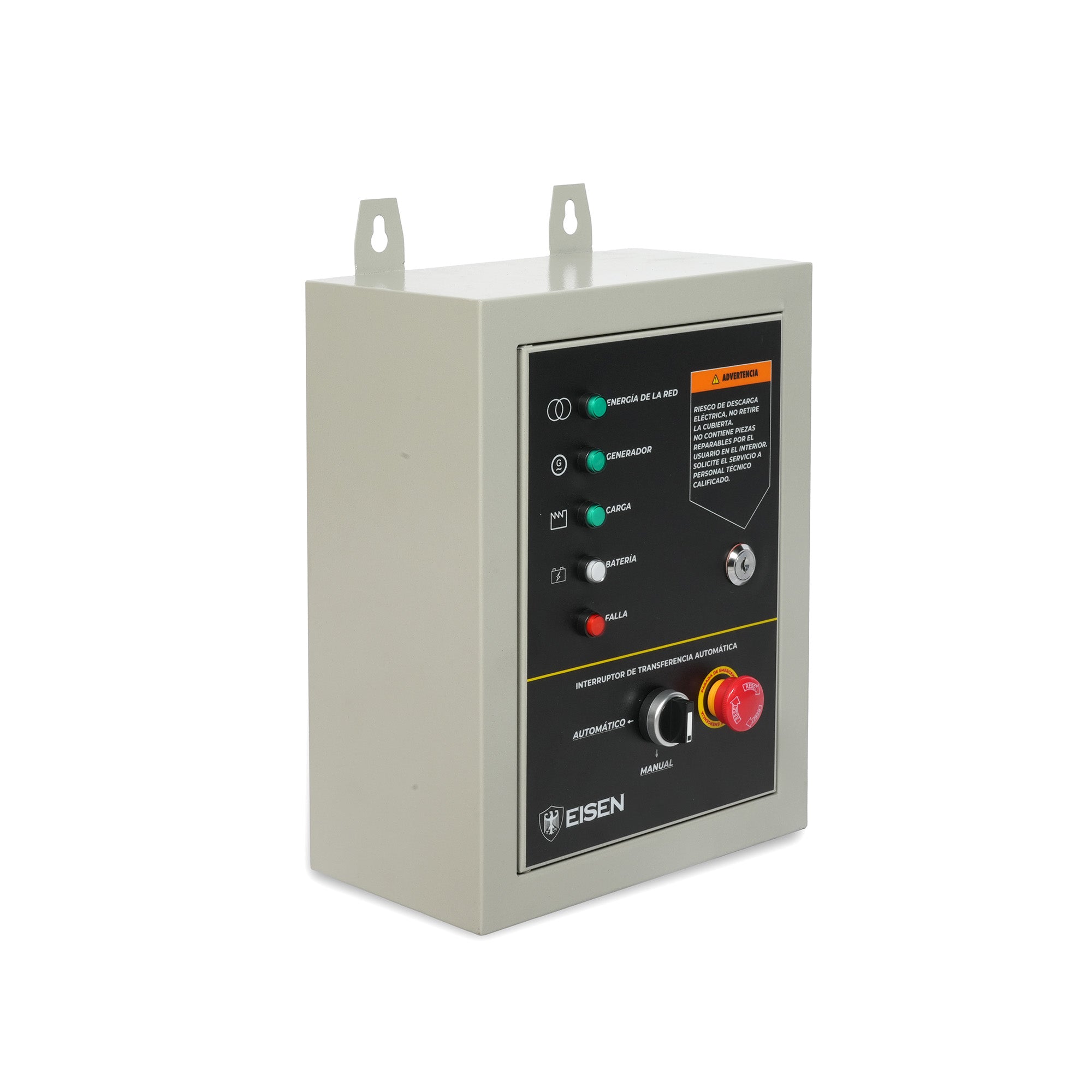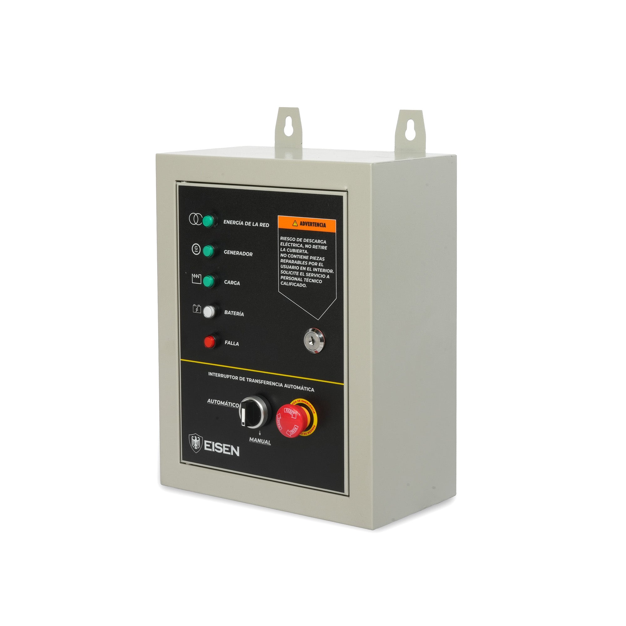 El sistema ATS de EISEN es un dispositivo inteligente diseñado para gestionar automáticamente el suministro eléctrico entre la red pública y un generador de emergencia. Su función principal es detectar cortes de energía y activar el generador de forma autónoma, garantizando la continuidad del suministro eléctrico para el usuario sin necesidad de intervención manual.