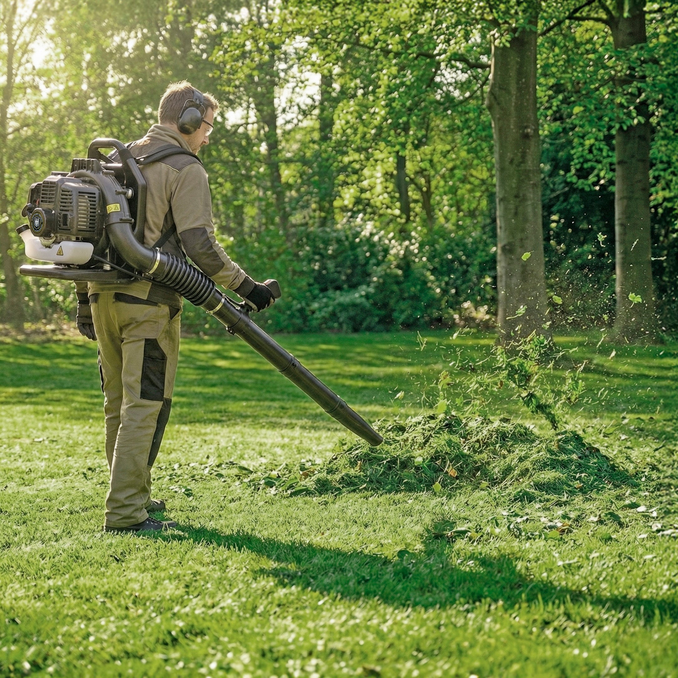 Sopladora de Aire, Bencinera. Ideal para el mantenimiento de suelos de partículas, hojas y polvo.